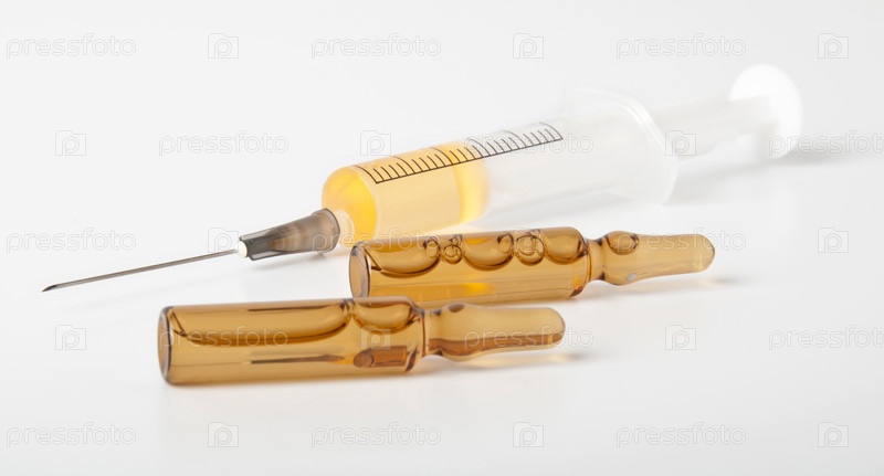 Медицинские ампулы и шприц, изолированные на белом фоне