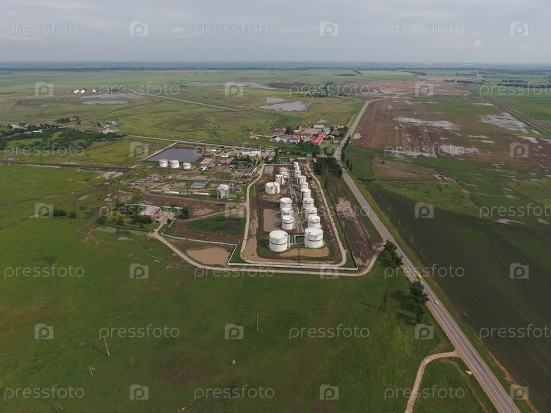 Аэрофотоснимок резервуаров для хранения нефти