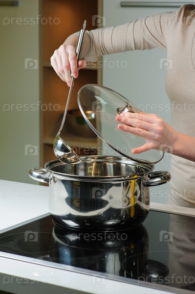 Женщина готовит суп
