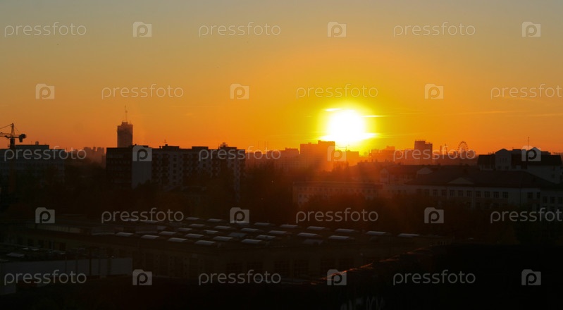 Силуэты зданий на фоне заката