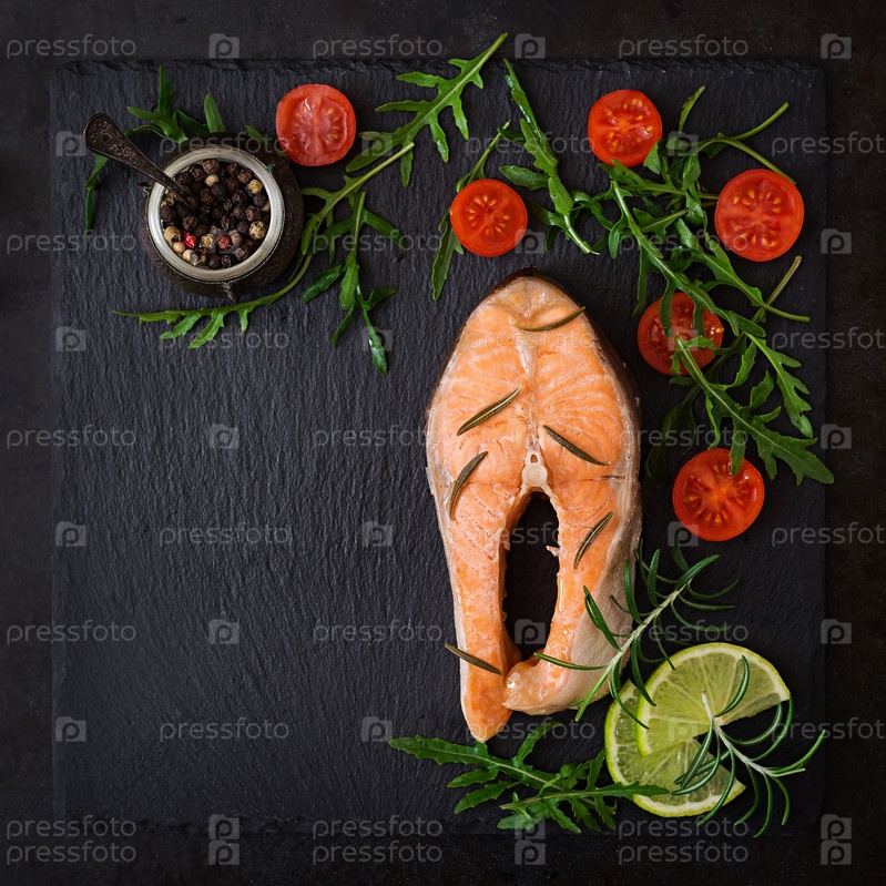 Приготовленный стейк лосося с овощами