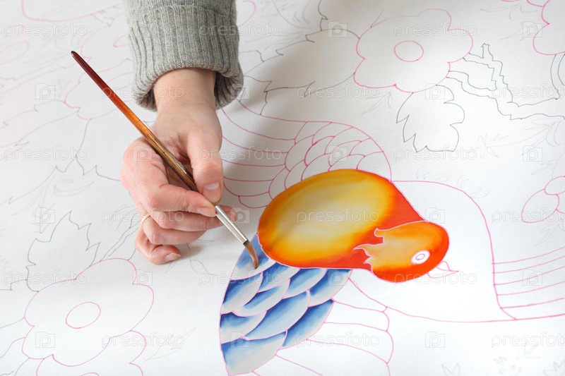 Человек расписывает ткань