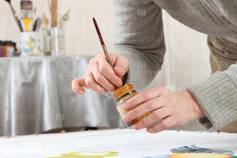 Человек расписывает ткань