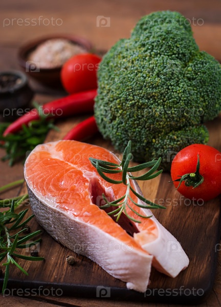 Сырой стейк лосося и овощи