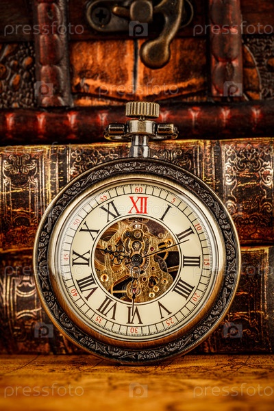 Старые книги и старинные карманные часы