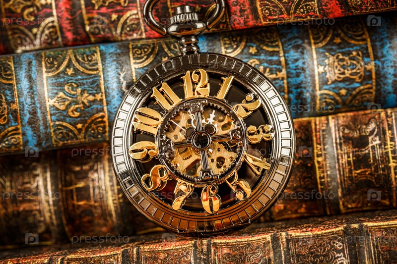 Старые книги и старинные карманные часы