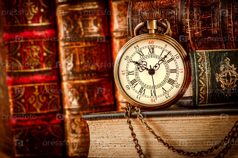 Старые книги и старинные карманные часы