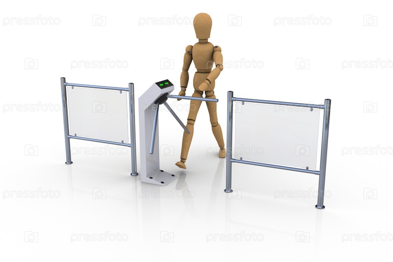 Деревянный человек проходит через турникет