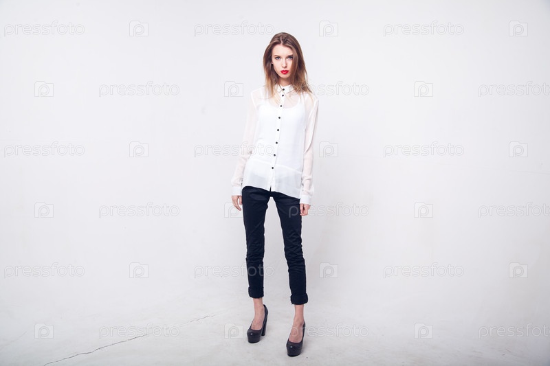 Стройная женщина в белой блузке