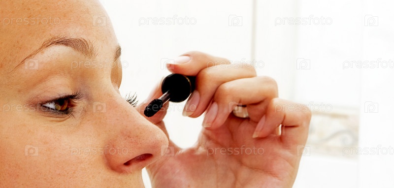 Молодая женщина красит ресницы