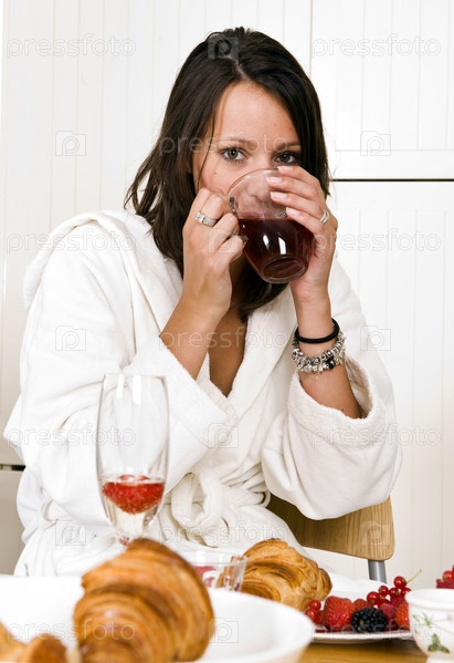 Красивая девушка на кухне с кружкой чая