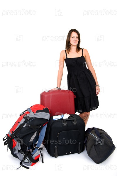 Молодая женщина с чемоданами