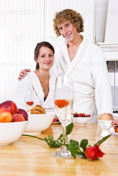 Молодая пара завтракает