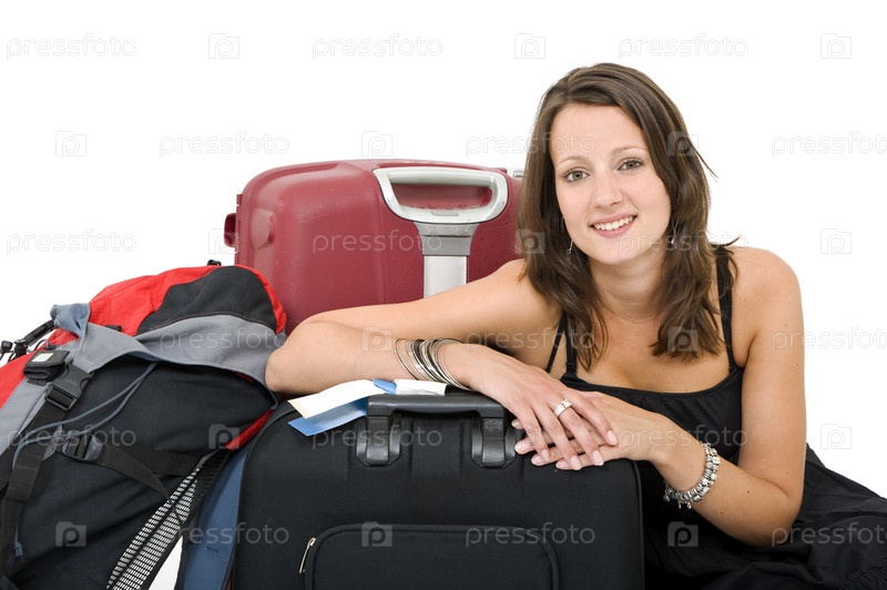 Молодая женщина с чемоданами