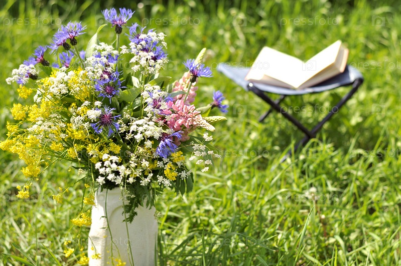 Букет полевых цветов и открытая книга