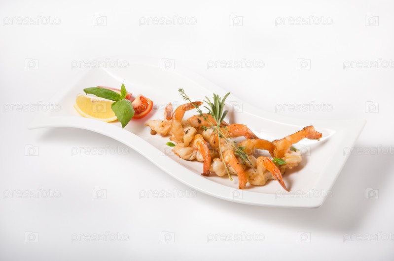 Жареные креветки с травами