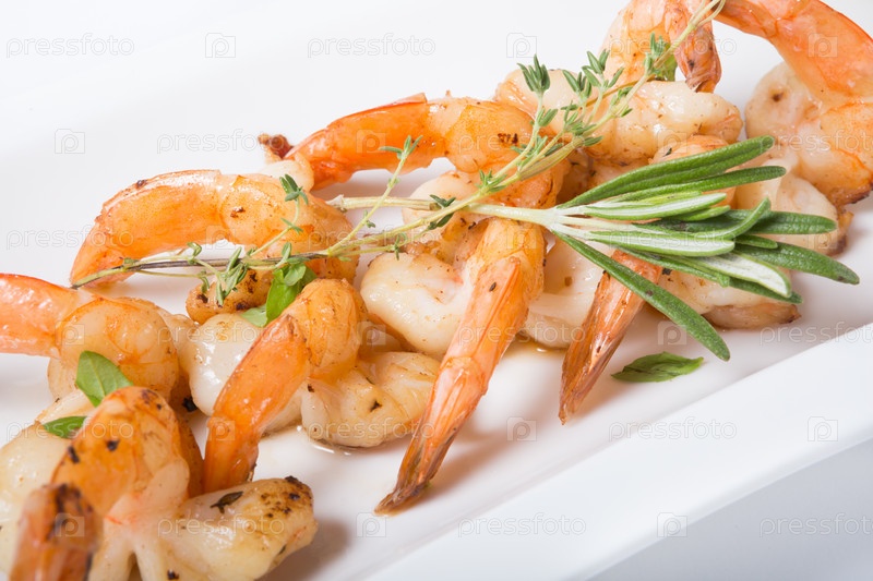 Жареные креветки с травами