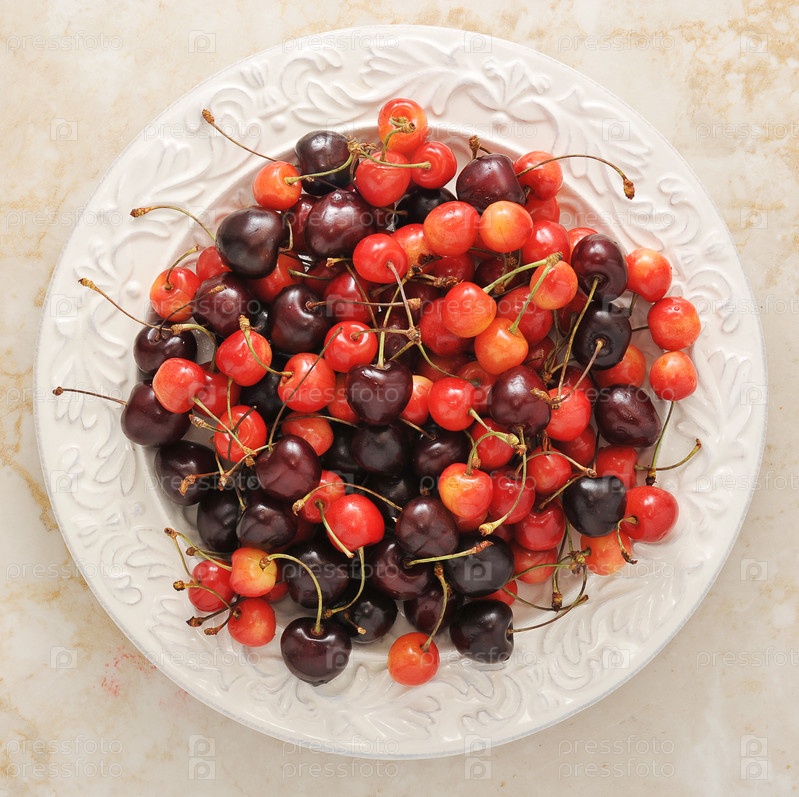 Свежие вишни на тарелке