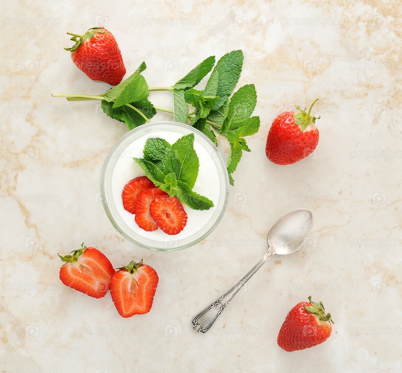 Молочный десерт с клубникой