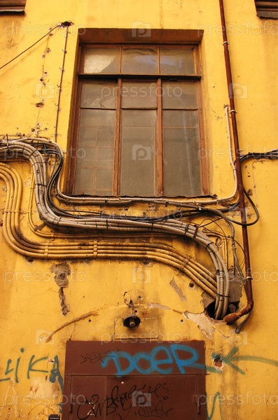 Кабели на стене