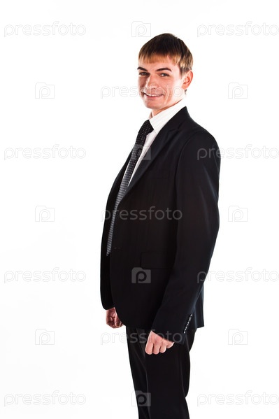 Молодой и успешный бизнесмен в строгом деловом костюме темного цвета