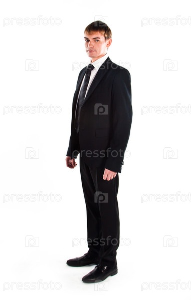 Молодой и успешный бизнесмен в строгом деловом костюме темного цвета