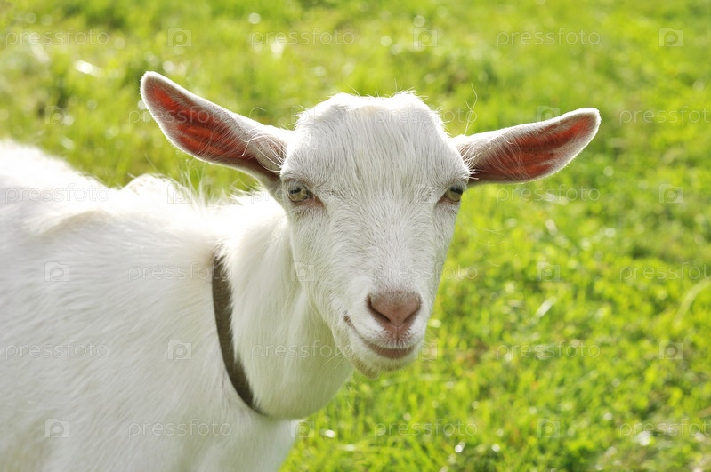 Белая коза на лугу