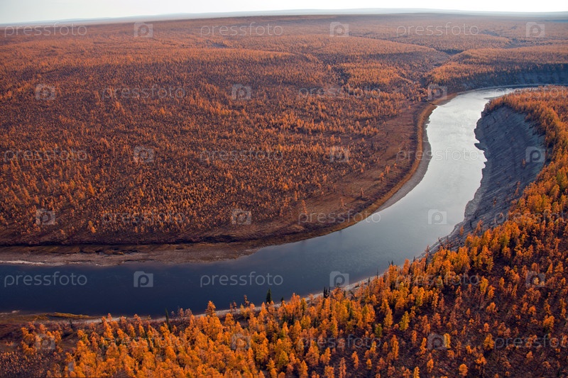 Берега реки Мойерокан в Сибири осенью