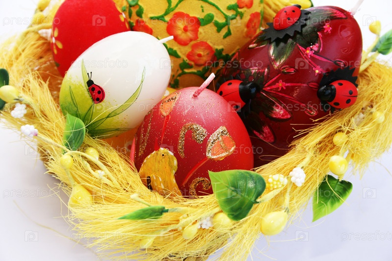 Пасхальные яйца на белом фоне