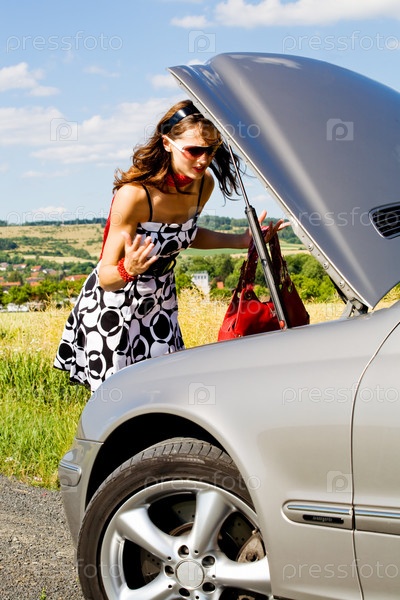 Девушка у сломанного автомобиля