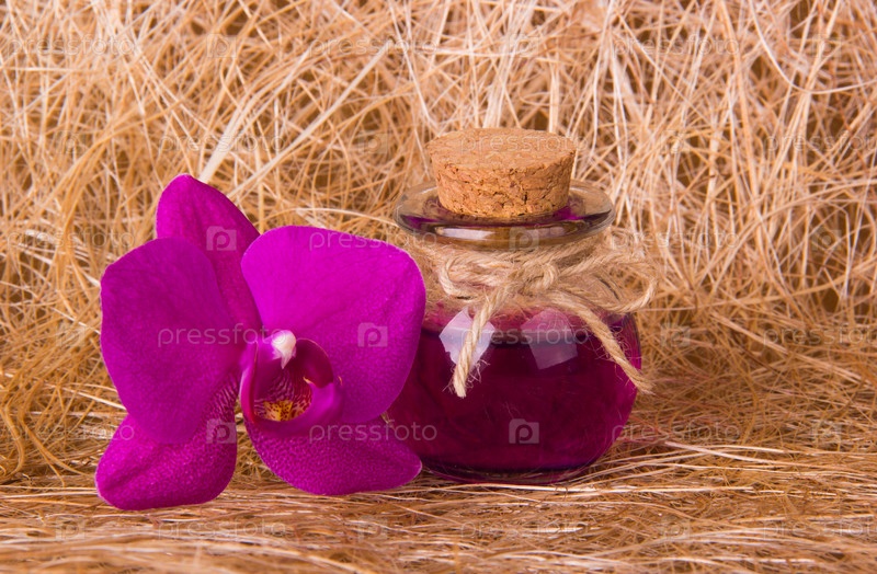 Флакон с маслом и орхидея