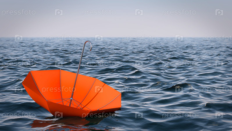 Плавучий зонтик в море