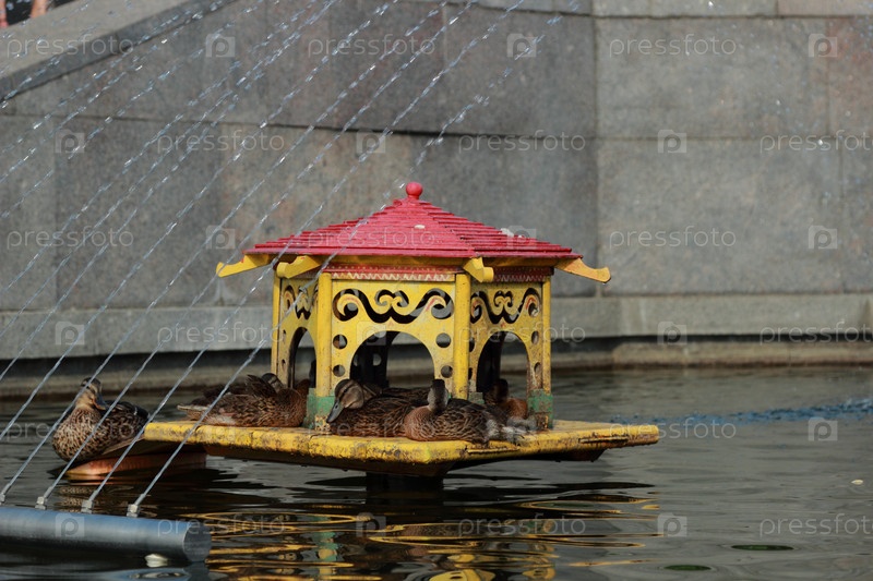 Дом для уток в пруду парка
