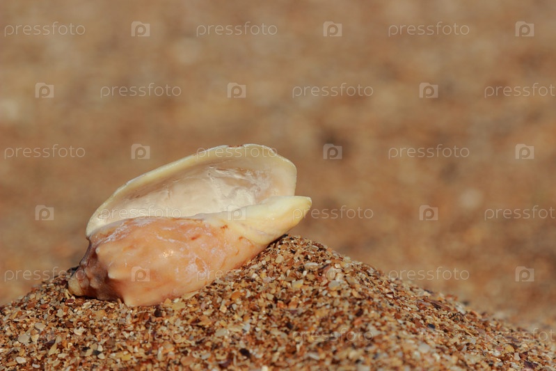 Песчаный пляж и ракушка