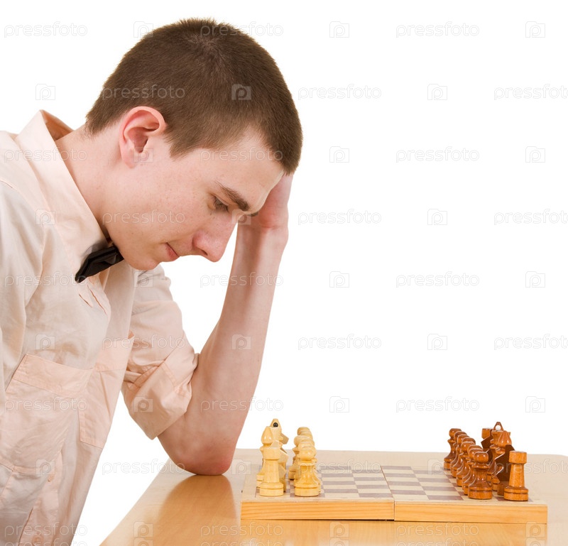 Великий мастер думает на шахматной доске
