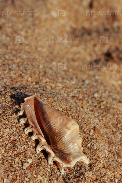 Красивая морская раковина на берегу