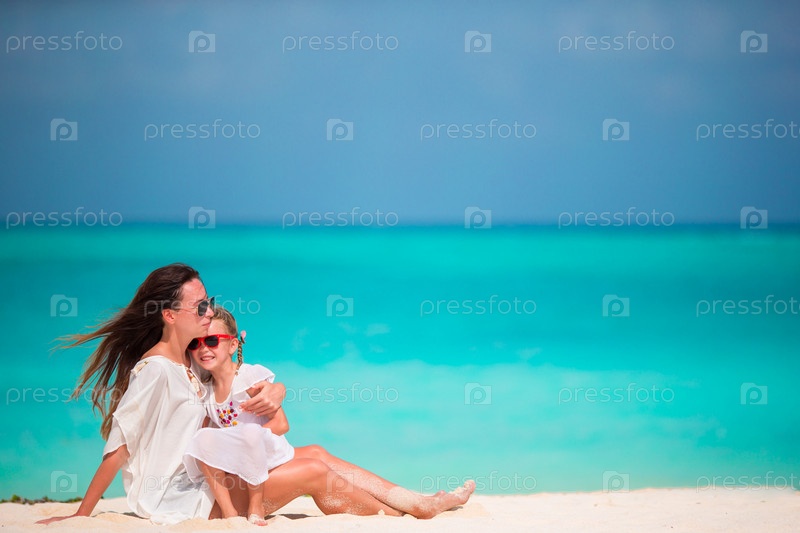 Мать и маленькая девочка во время тропического отпуска