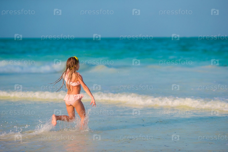 Очаровательная маленькая девочка веселится на пляже
