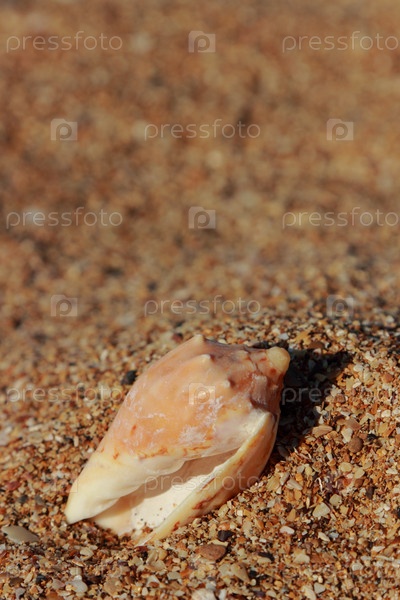 Красивая морская раковина на берегу