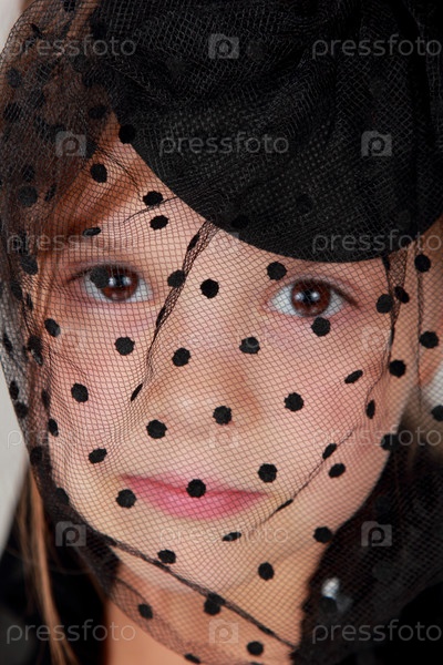 Девочка в черной шляпе с вуалью