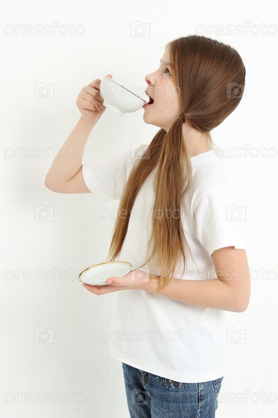 Милая девочка с чашкой чая