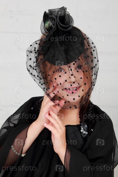 Девочка в черной шляпе с вуалью