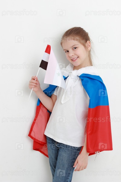 Девочка с флагом России и Сирии