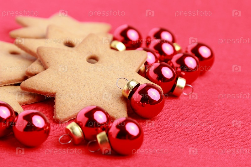 Рождественские пряники печенье снежинка на красном фоне текстурированных
