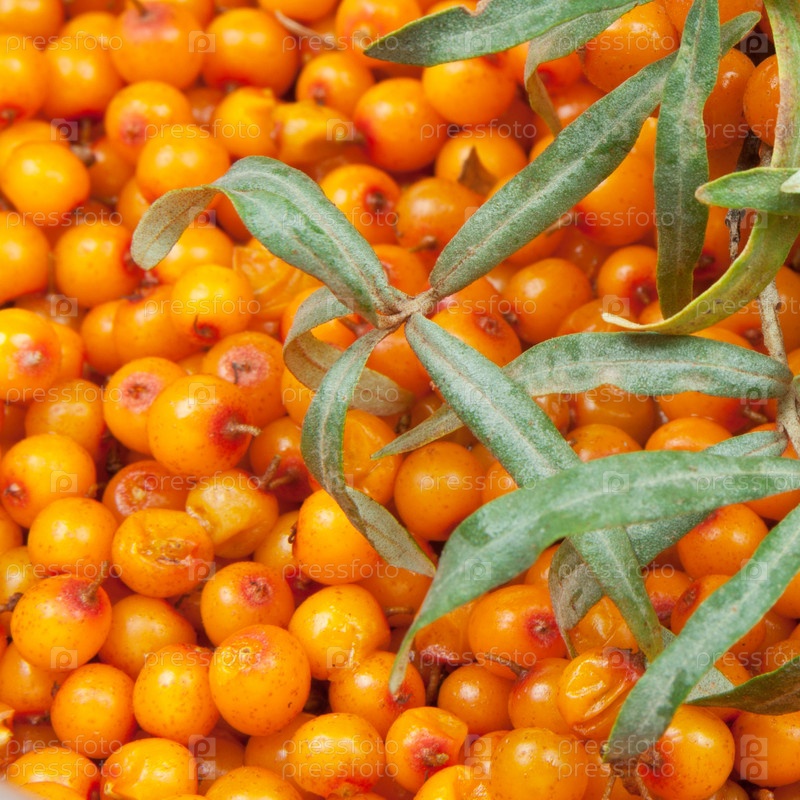 Облепиха с зелеными веточками как фон