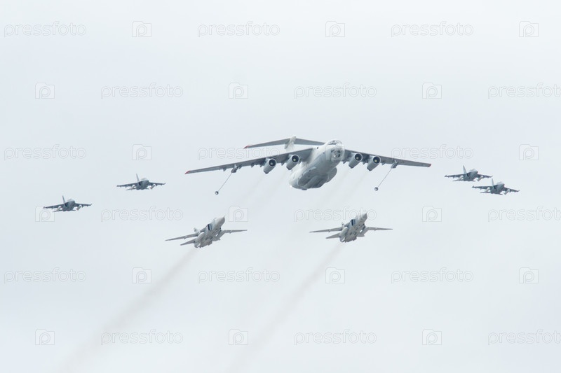 Самолеты Ил-78 Су-24, Як-130 в небе