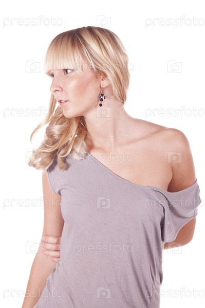 Красивая молодая блондинка на белом фоне