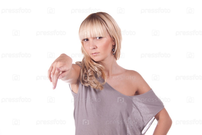 Красивая молодая блондинка на белом фоне