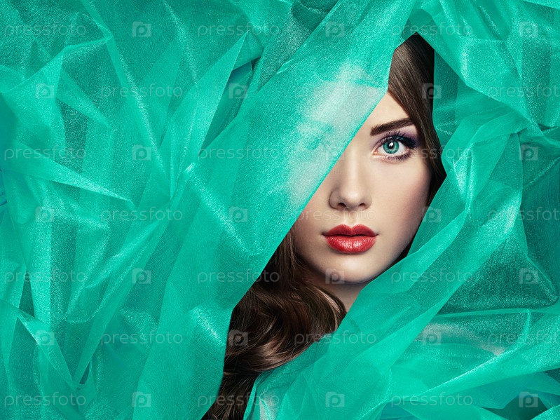 Прекрасная женщина под бирюзовой вуалью