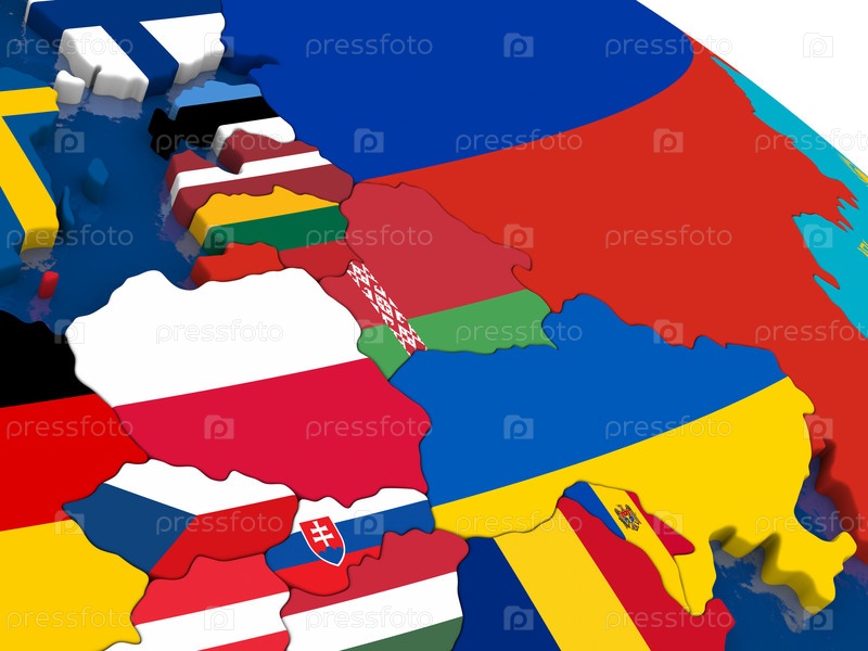 Восточная Европа на 3D-карте с флагами
